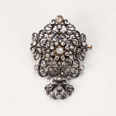 Antica Spilla In Oro, Argento E Rose DI Diamante