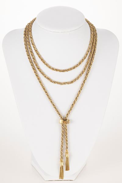 Lunga Collana A Maglia Morbida In Oro E Diaspro Verde
