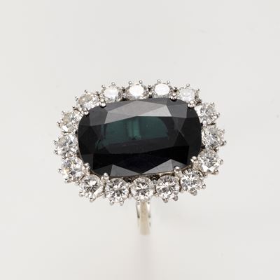 Anello Ovale In Oro Bianco Con Zaffiro E Diamanti