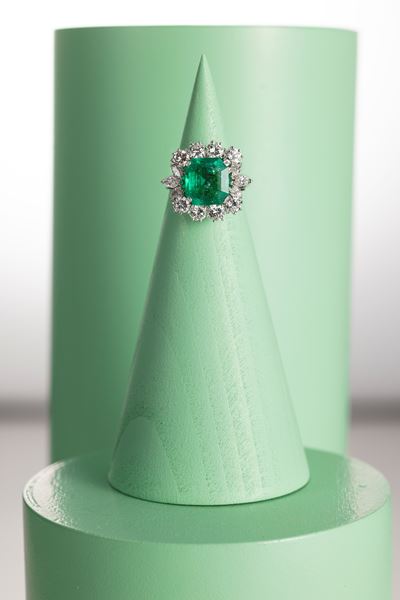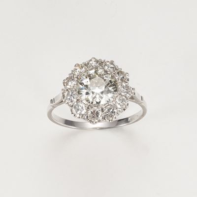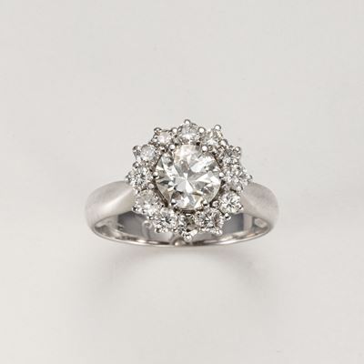 Anello A Margherita In Oro Bianco Con Diamanti Taglio Brillante