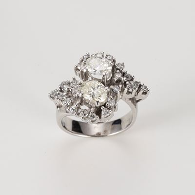 Anello A Fasce Sovrapposte In Oro Bianco E Diamanti Taglio Brillante