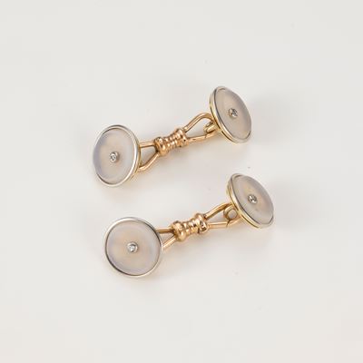 Gemelli In Oro Con Cristallo DI Rocca Satinato E Piccoli Diamanti