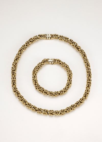 Parure In Oro Giallo E Argento Con Diamanti, Rubini E Smeraldi