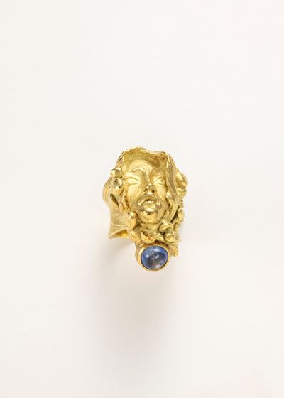 Anello-Scultura In Oro Giallo Con Zaffiro