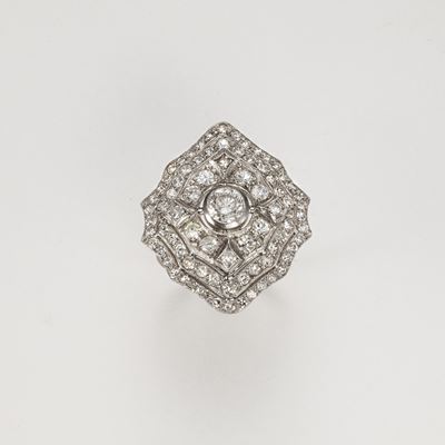 Anello A Losanga Traforata In Oro Bianco Con Diamanti