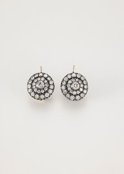 Orecchini In Oro Giallo E Argento Con Diamanti