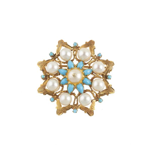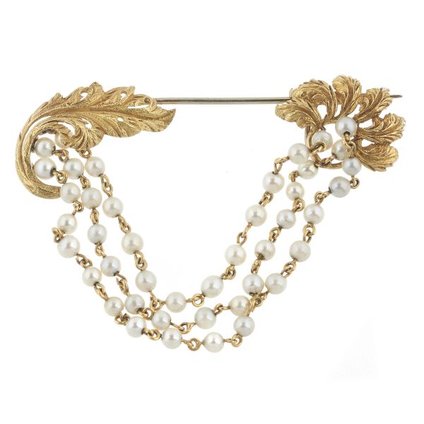 SPILLA A FORMA DI TRALCIO FIORITO CON PERLE
