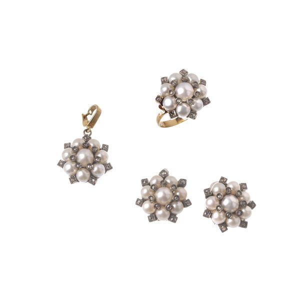 PARURE CON PERLE E DIAMANTI