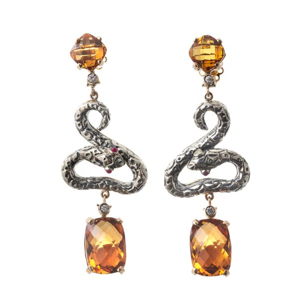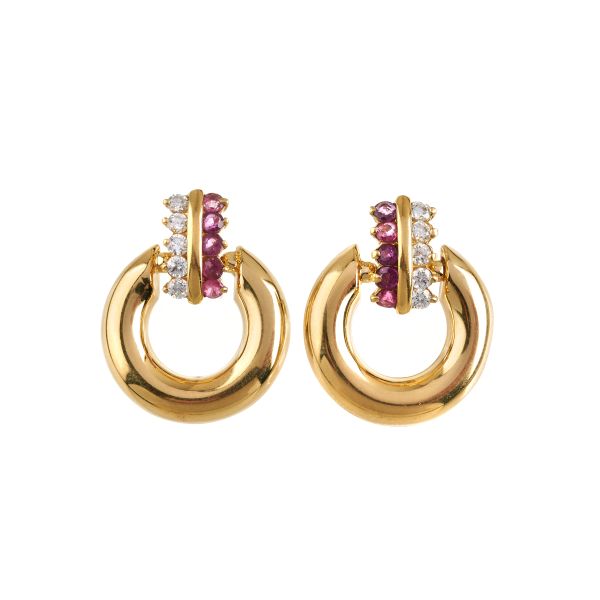 PAIO DI ORECCHINI CON RUBINI E DIAMANTI