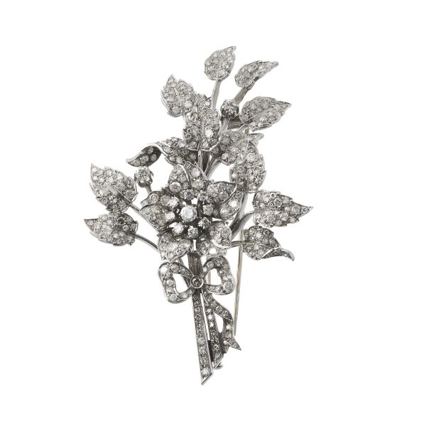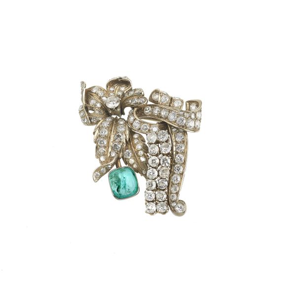 SPILLA A TRALCIO FIORITO CON SMERALDO E DIAMANTI