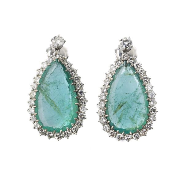 PAIO DI ORECCHINI CON SMERALDI E DIAMANTI