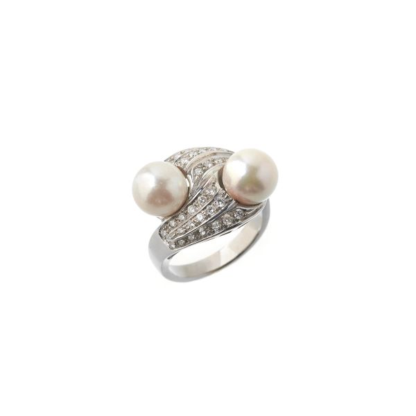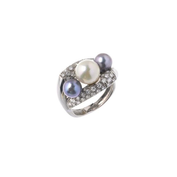 ANELLO CONTRARIE CON PERLE E DIAMANTI