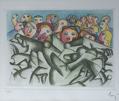 Tra i pezzi salienti, spiccano opere di artisti di fama internazionale, la cui maestria tecnica e innovativa ha segnato la storia dell'arte contemporanea. Ogni opera in catalogo racconta una storia, riflettendo non solo il talento dell'artista, ma anche il contesto culturale e sociale in cui è stata creata. Questa collezione offre un'eccezionale occasione per approfondire la propria conoscenza e passione per la grafica.