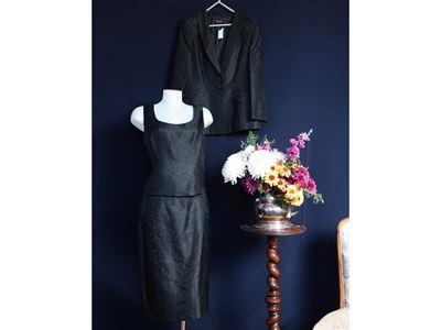 Escada, Completo Da Sera In Tessuto Damascato Nero