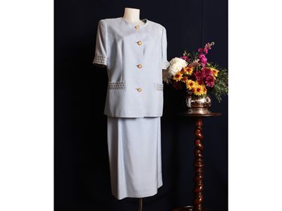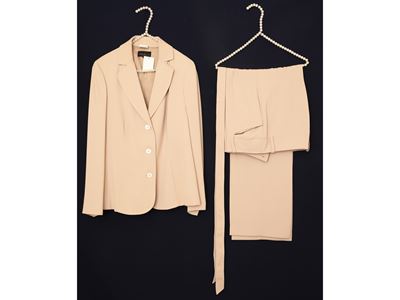 Escada, Tailleur Pantalone In Lana E Seta Azzurro