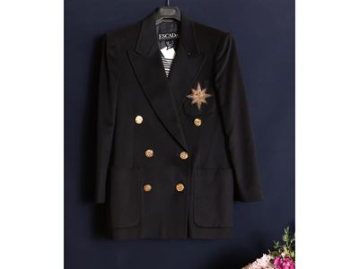 Escada, Giacca In Lapin E Lana Blu Elettrico