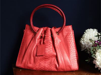 Oscar De La Renta, Borsa A Mano In Pitone Color Corallo