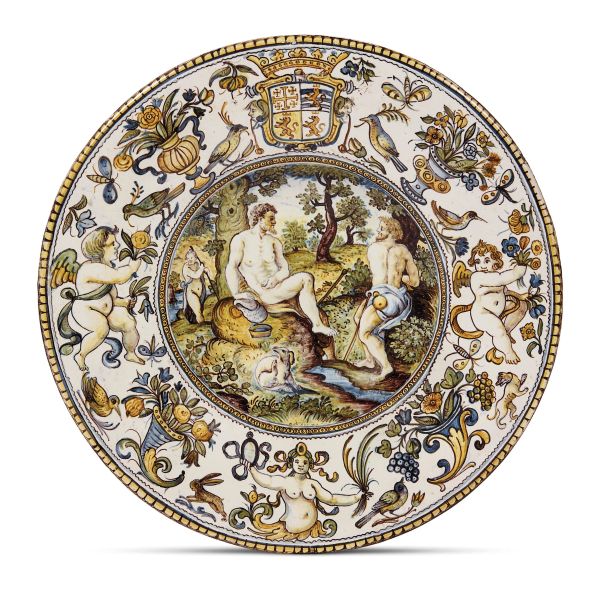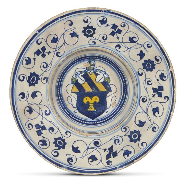 GRANDE PIATTO STEMMATO, URBINO, BOTTEGA PATANAZZI, FINE SECOLO XVI