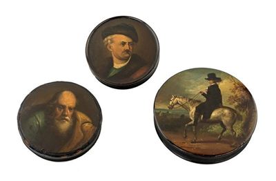 LOTTO DI TRE TABACCHIERE IN PAPIER MACHÉ