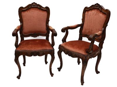 Coppia DI Seggioloni In Noce