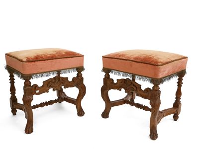 Coppia DI Sgabelli In Noce
