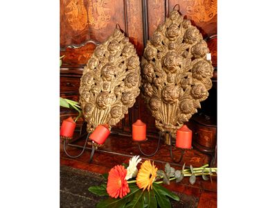 Coppia DI Ventole In Legno Intagliato E Dorato
