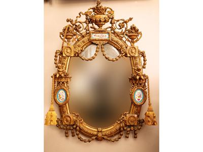 Grande Specchiera DI Forma Ovale Con Cornice In Legno Dorato E Pastiglia