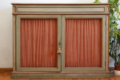 Libreria Bassa In Legno Laccato Verde Acqua E Lumeggiato Oro