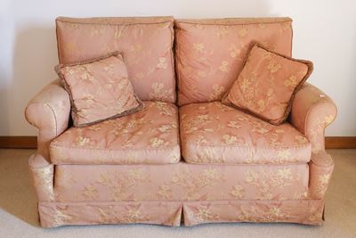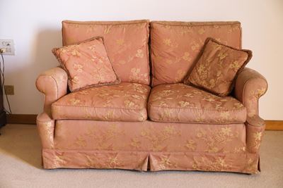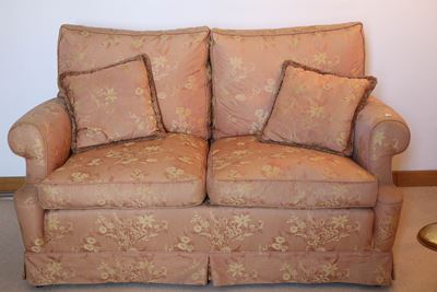 Divanetto A Due Posti Imbottito E Rivestito In Broccato Rosa Antico