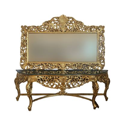 Grande console con specchiera in legno dorato