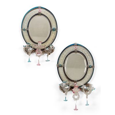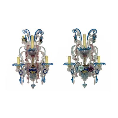 Coppia di lumiere a tre luci in vetro, Murano, XIX secolo