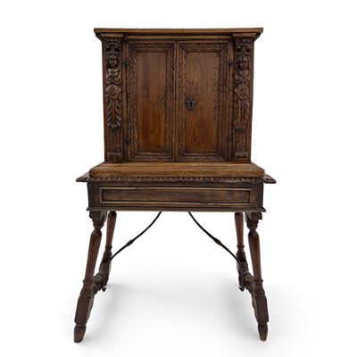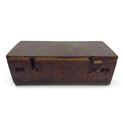 Baule in legno interamente rivestito in cuoio borchiato, XVII secolo