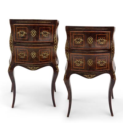 Coppia di eleganti comodini lastronati in bois de violette, Sicilia, XIX secolo