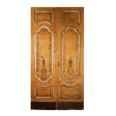 Porta a due ante in legno laccato ocra, Napoli, periodo Luigi XV