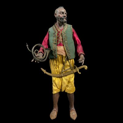 Suonatore moro attribuibile a G.B. Polidoro, Napoli, fine del XVIII-inizi del XIX secolo, h. cm. ...