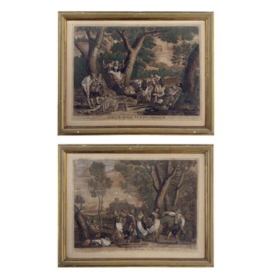 Quattro incisioni acquarellate, XVIII secolo