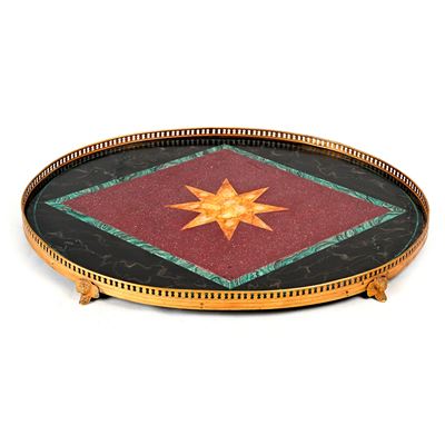 Surtout de table di forma ovale con piano in broccatello di Spagna, XIX secolo