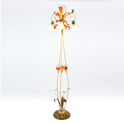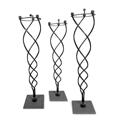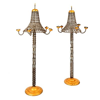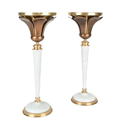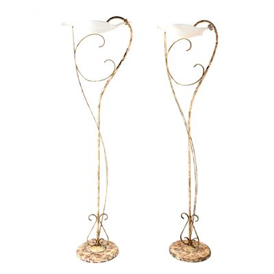Coppia di piantane da terra in ferro battuto e dipinto a finto marmo