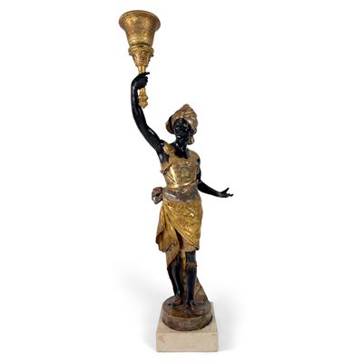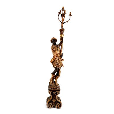 Moro reggitorcia in legno laccato, dorato e policromo, Venezia, XIX secolo