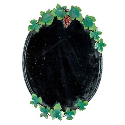 Specchiera di forma ovale in ferro battuto e dipinto in policromia