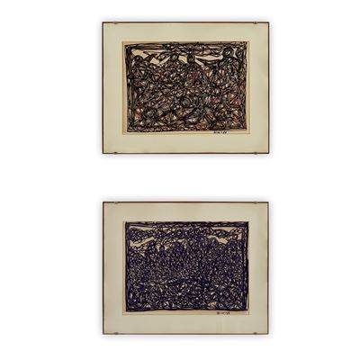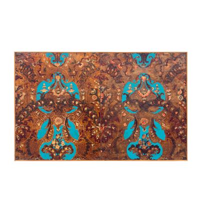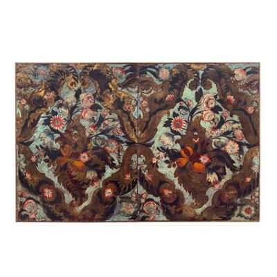 Coppia di pannelli in cuoio di Cordova riuniti in unica cornice, XVII secolo