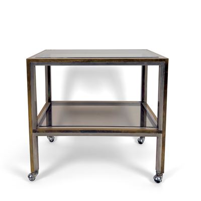 Tavolinetto in ottone cromato e dorato attribuibile a Romeo Rega