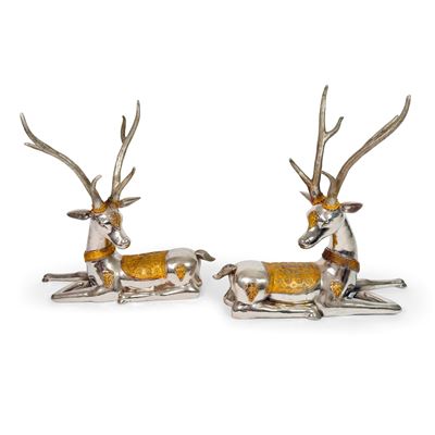 Tre corni montati in argento 875/1.000 parzialmente niellato e inciso, Manifattura russa