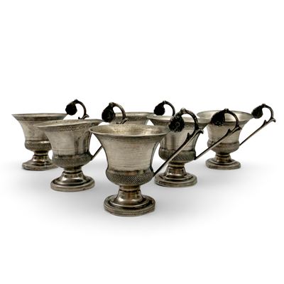 Sei tazzine in miniatura in argento, Napoli, XIX secolo