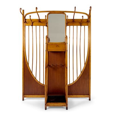 Attaccapanni da muro con specchio in faggio incurvato a fuoco, Thonet