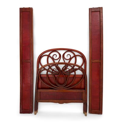 Letto singolo in faggio curvato a fuoco tinto mogano nello stile Thonet