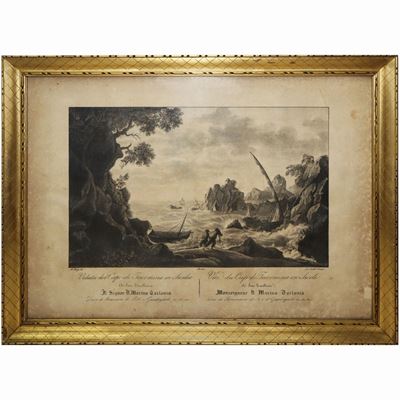 Coppia di incisioni raffiguranti cono del vulcano ed il prospetto meridionale