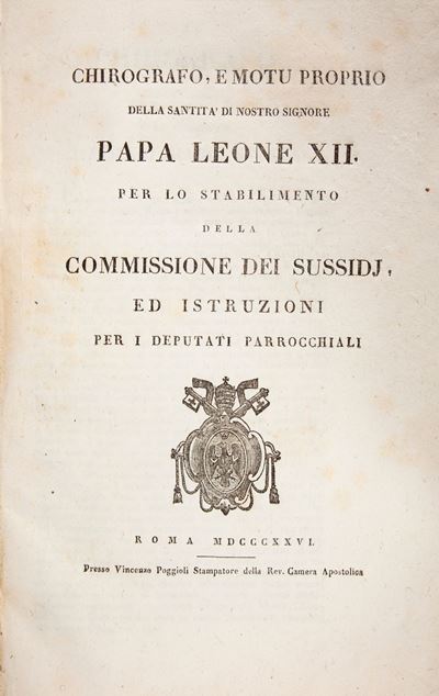Chirografo E Motu Proprio Della Santità DI Nostro Signore Papa Leone XII Per Lo Stabilimento Dell...