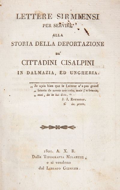 Francesco Apostoli - Lettere Sirmiensi Per Servire Alla Storia Della Deportazione De' Cittadini C...