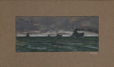 Marconi (?) - Acquarello Con 4 Navi Da Guerra